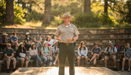 A shiny sheriff badge gleams on the coat of a lawman standing proudly in a quiet town.