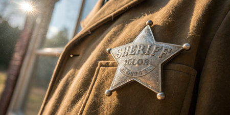 Close up of sheriff badge when on his coat duster