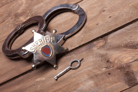 old sheriff badge and handcuffs