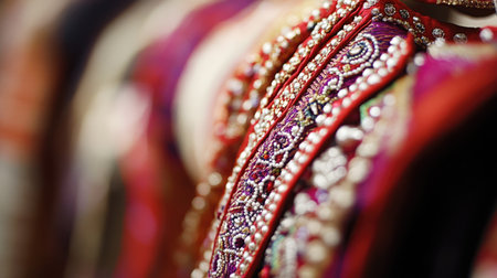 This captivating close-up of ethnic wear reveals intricate patterns and vibrant colors, showcasing exceptional craftsmanship and cultural heritage.