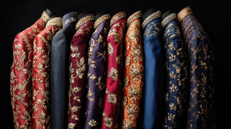 A stunning array of elegantly embroidered jackets showcasing exquisite craftsmanship and vibrant colors, perfect for traditional and modern fashion inspiration.