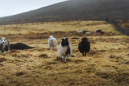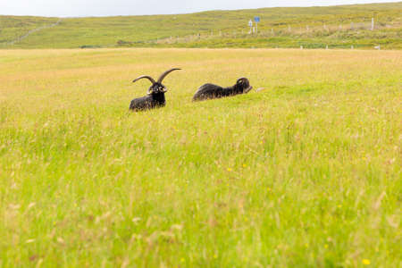 Faroe sheep at the Faroe Islands, part of the Kingdom of Denmark