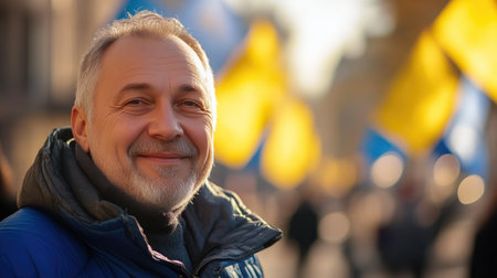 Cheerful Ukrainian Man Against Flag Backdrop