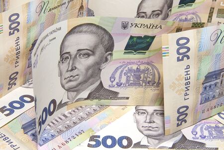 Ukrainian hryvna, banknotes 500 hryvnia. Financial background by 500 hryvnia bills. Money background.