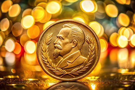 Soviet 1 Ruble Commemorative Coin Macro Shot with Bokeh Background