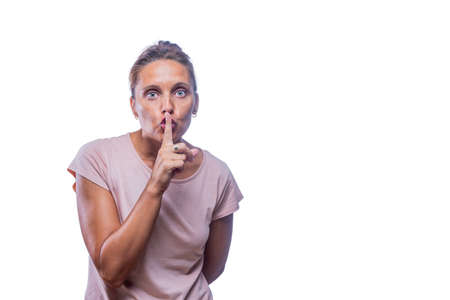 Young woman requesting for silence, studio shot
