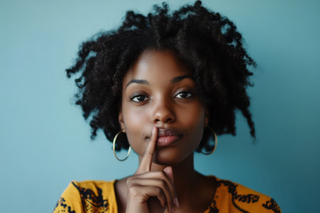 Portrait of a beautiful African American woman asking for silence