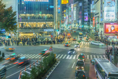 Tokyo, Japan - Nov 08 2017 : Rush hour crowded traffic jam of light vehicle at Shibuya crossing square