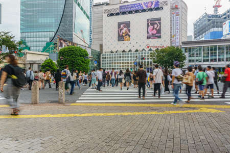Tokyo, Japan - September 21, 2018 : Pedestrians cross at Shibuya Crossing in Tokyo , Japan.