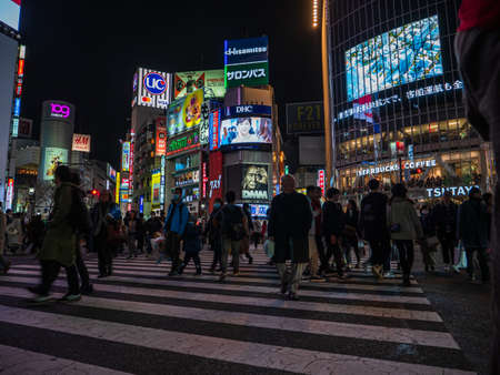 SHIBUYA, JAPAN - FEBRUARY 19, 2016 : Shibuya big crosswalk in Japan, Beautiful cityscape at night