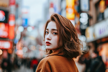 Portrait of a young Asian woman in a city street