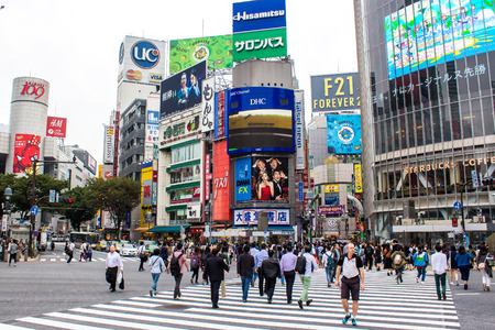 TOKYO, JAPAN - November, 21, 2014: Shibuya crossing in Tokyo, the busiest intersection in the world