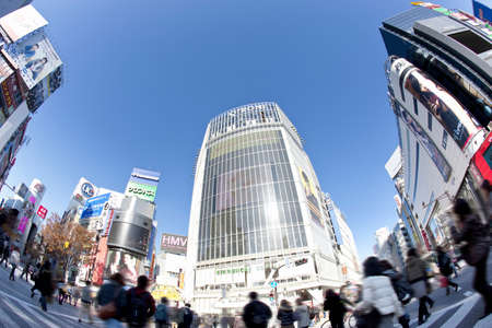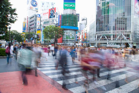 Tokyo, Japan - November 6, 2015: Pedestrians cross at Shibuya Crossing on November 6th in Tokyo, Japan, 2015 . Shibuya Crossing is one of the busiest crosswalks in the world.