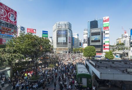 TOKYO, JAPAN - OCTOBER 10, 2015 - Shibuya Crossing, One of the world's most used pedestrian scrambles, at Hachiko Square in Shibuya special ward.