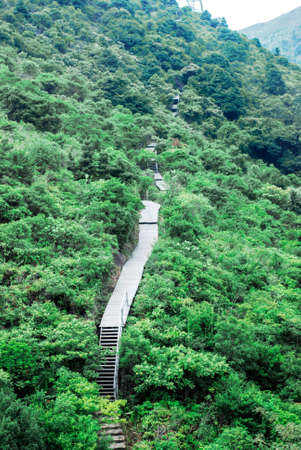 Wooden plank path on top of Wugong Mountain (Wugongshan) in Jiangxi, China