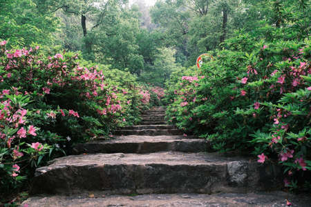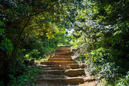 Footpath in woods on Beigao Peak in Hangzhou, Zhejiang, China