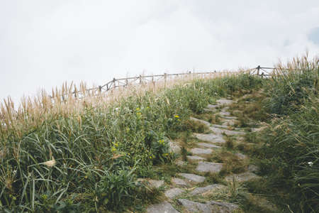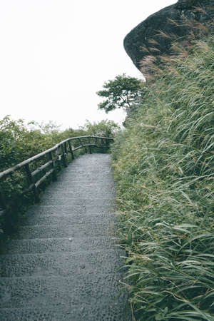 Stone path among grass on Wugong Mountain in Jiangxi, China