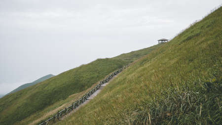 Peaceful path through green coastal hills and grasslands on the Caoling Historic Trail in Taiwan