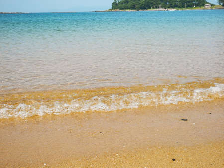 Scene as background, sea and sand of wet beach wet by the waves of the sea.