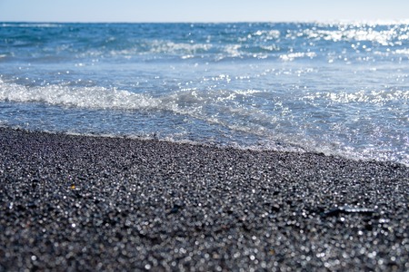 ocean water on black sandy beach. outdoor shot on Tenerife, Spain. Copy space.