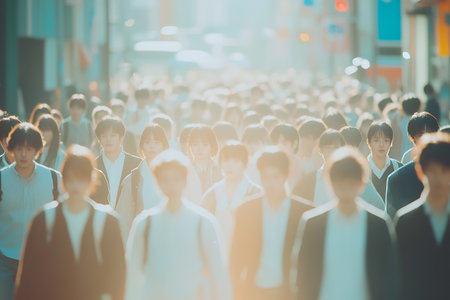 Crowd of people walking in the city. Shallow depth of field