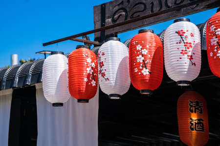 Chiang Rai, Thailand - January, 09, 2022 : Japanese red lanterns at a restaurant at Chiangrai Thailand.