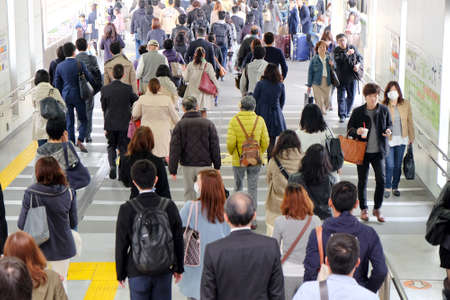TOKYO, JAPAN - MARCH 30 : People in subway train in rush hour taken March 30, 2016. People in Tokyo use subway underground as main transportation.