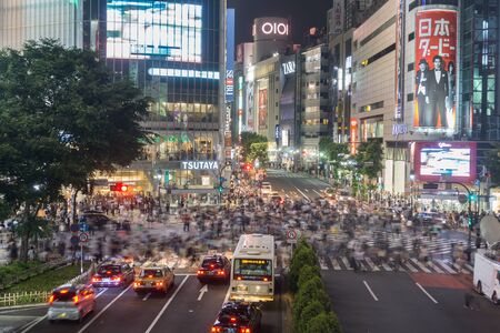 Tokyo, Japan. May 30, 2015. The shibuya district in Tokyo with blurred people. Shibuya is popular in Tokyo for his pedestrian cross where pedestrians cross in the same moment from all directions.