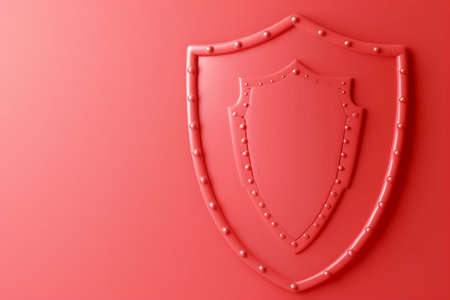 Red Shield Icon on Grey Background. 3d Render Illustration.