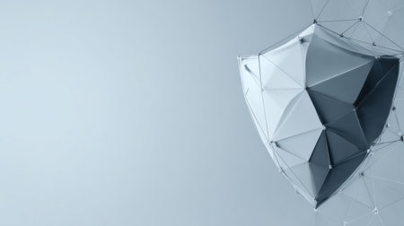 Cyber security concept. Abstract polygonal shield on dark background. 3D Rendering