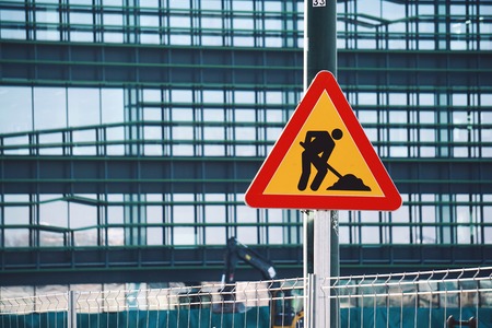 Construction work is underway. Repair work is being carried out. Symbol of construction work, urban development and infrastructure improvement