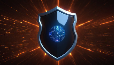 A glowing cybersecurity shield symbolizes protection in digital world