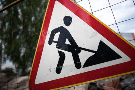 Sign of road work to inform traffic participants about carrying out repairs on road.