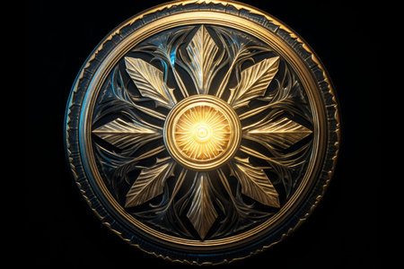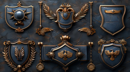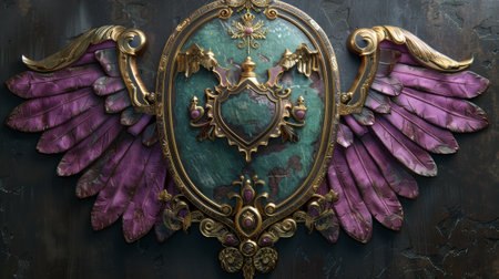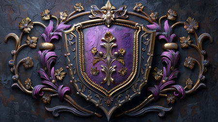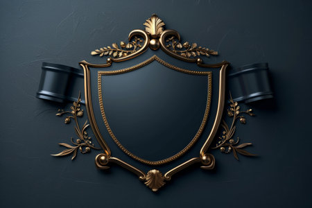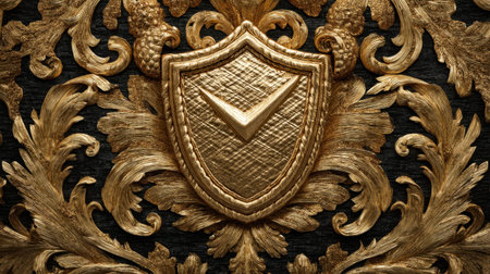 This stunning image features an ornate golden shield surrounded by intricate floral designs on a dark background, ideal for luxury-themed projects.