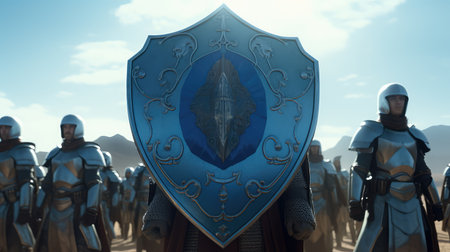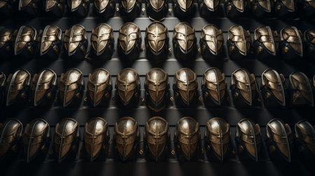 Army Of Protection Rows Of Weathered Shields Symbolizing Security, Defense, And Resilience