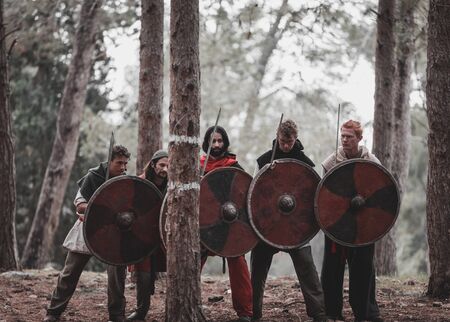 Warrior of medieval Europe. Medieval battle (reconstruction) Czech Republic, Libusin, 25 04 2015