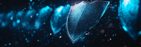 Abstract Protection Glowing Blue and White Security Shields on Dark Background for Insurance