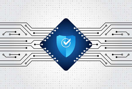Data security system, information or network protection. Cyber security and data protection. Shield icon, future technology for verification. Abstract circuit board.