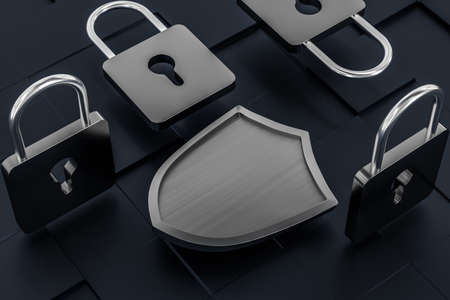 Data protection concept. Abstract cyber security background. 3D Rendering