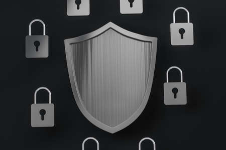 3d rendering, a defense shield with technological background, computer digital background