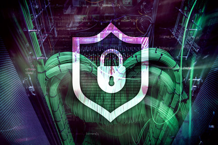 Online data protection shield and abstract with computer technology