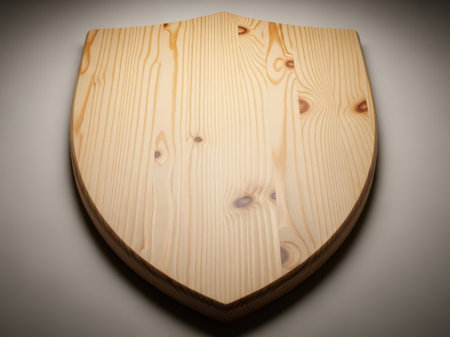 AI Generated. Wooden shield with keyhole symbolizing financial protection and security