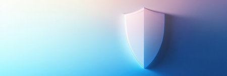 Silhouette of a shield shape is displayed against a soft gradient background. The center is empty, emphasizing trust and security themes.