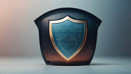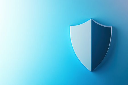 3d rendering of a shield on a blue wall with copy space