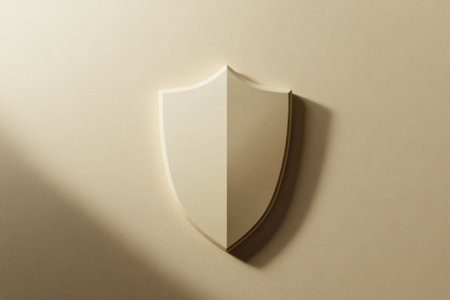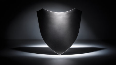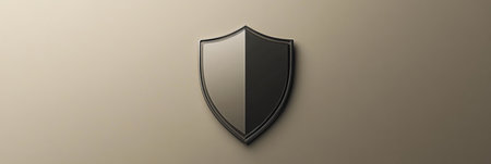 A minimalistic black shield emblem is displayed against a soft, light background symbolizing protection and security in contemporary design.