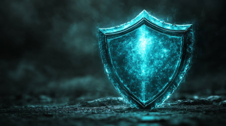 Neon-toned digital shield image on a dark gradient background, creating a protective atmosphere.