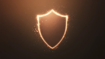 This captivating image features a glowing shield symbol set against a dark surface, surrounded by sparkling particles. Ideal for creative projects.