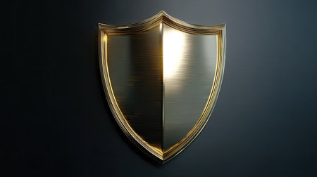 A stunning golden shield design, representing strength and protection. This elegant emblem features a glossy metallic finish, perfect for branding and artistic projects.