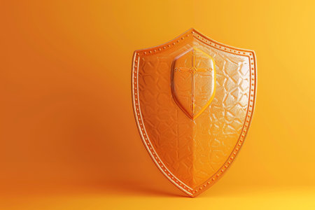 3D rendering of a black shield in front of an orange background