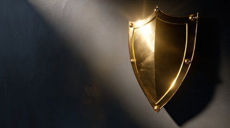 A stunning golden shield design, representing strength and protection. This elegant emblem features a glossy metallic finish, perfect for branding and artistic projects.